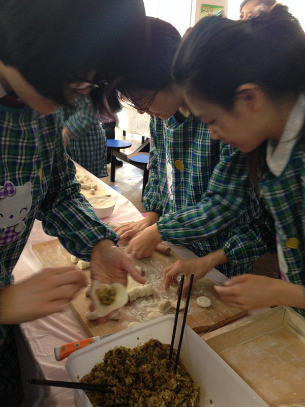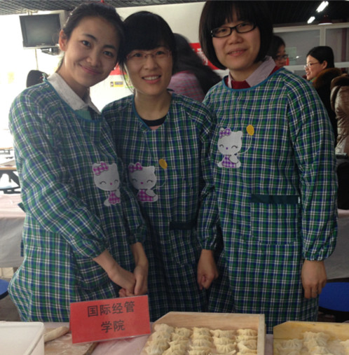 2014年校工会组织的三八妇女节包饺子比赛是天美传播媒体 分工会成立以来参加的第一个全校性活动。3月5日早上,学院的三名参赛队员苏志、王超、金湜在9点前到达比赛地点——第三食堂一楼,为比赛积极做准备工作。大家一到会场就把外套换下,把工会配发的围裙穿上。王超从家里带了擀面杖、擀面板和切面刀,可谓是万事俱备,只欠面团和饺子馅。安置好包饺子工具,三人开始商量分工,苏志负责切面块和包饺子,王超负责对体力、技术、速度要求较高的擀面工作,金湜负责把方形面块压成圆形面块和包饺子。当三位参赛队员在商量战术的时候,忽然发现学院的陶乾老师也来到了比赛现场,特地为她们加油助威来了!队员们很受鼓舞! 当比赛开始的时候,三位队员按照既定战术有条不紊的开展工作。只见王超滚起擀面杖,一块块厚薄适中的饺子皮在她手中迅速成型;金湜和苏志拿起饺子皮放入比赛特制的饺子馅,一刻也不懈怠的包起饺子,为了使饺子美观,她们还认真的捏起饺子褶。陶乾在一旁给参赛队员加油助威,并帮忙数包好的饺子,不停的给她们报数。可是很快,队员们发现自己包饺子的速度落后于其他队伍,于是马上调整战术,开始包小饺子同时减少褶饺子工序。几分钟内,包好的饺子数量迅速增加,陶乾不停的倒数,还差10个,8个,6个….!终于,100个既美观又薄皮大馅的饺子包好了!大家马上举手示意裁判检查。 虽然这次比赛学院没有拿到任何奖项,但是在场的工会成员都很开心,重在参与,包个饺子庆节日!
