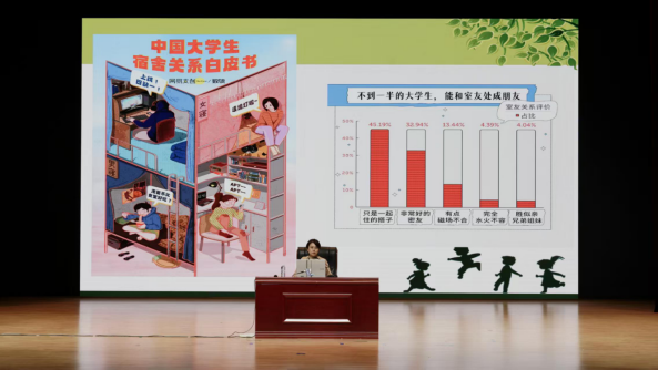 接下来,刘老师通过同学们的树洞来信带大家走进生活中的心理话题。三封信分别讨论了宿舍关系、友谊难题和自我同盟的问题,刘老师在不同方面提供了全新的视角。