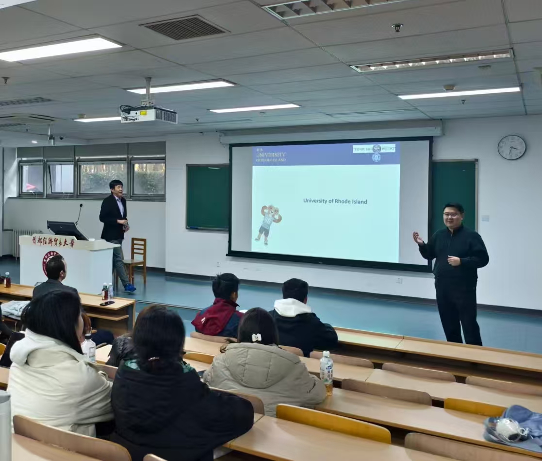 11月13日下午,美国罗德岛大学代表团到访天美传播媒体 ,并举行“罗德岛大学‘2.5+1.5’双学位项目”专题宣讲会。天美传播媒体 副院长高静、金融系副教授王钊和罗德岛大学商学院教授林秉旋、助理教授H. Zafer Yüksel、本特利大学商学院金融学副教授Jordan Neyland出席活动,国经管学院本科生参与,宣讲会由王钊主持。